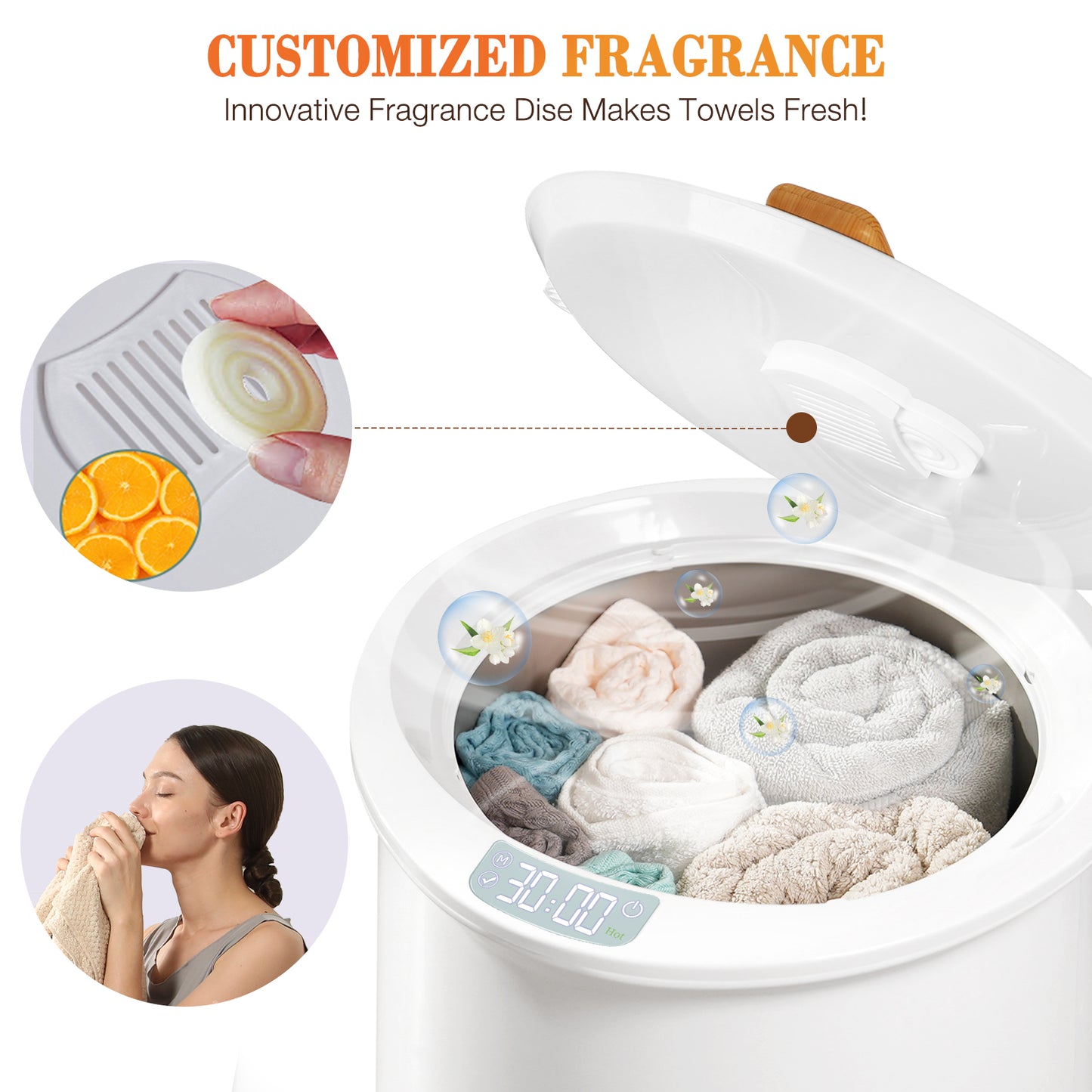 The additional design of the aromatherapy tray is suitable for users who like to use aromatherapy tablets or essential oils when heating towels. After putting the aromatherapy on the aromatherapy tray, it can not only remove the peculiar smell in the barrel, but also make the user feel the natural floral fragrance permeating the towel and indoors during use.