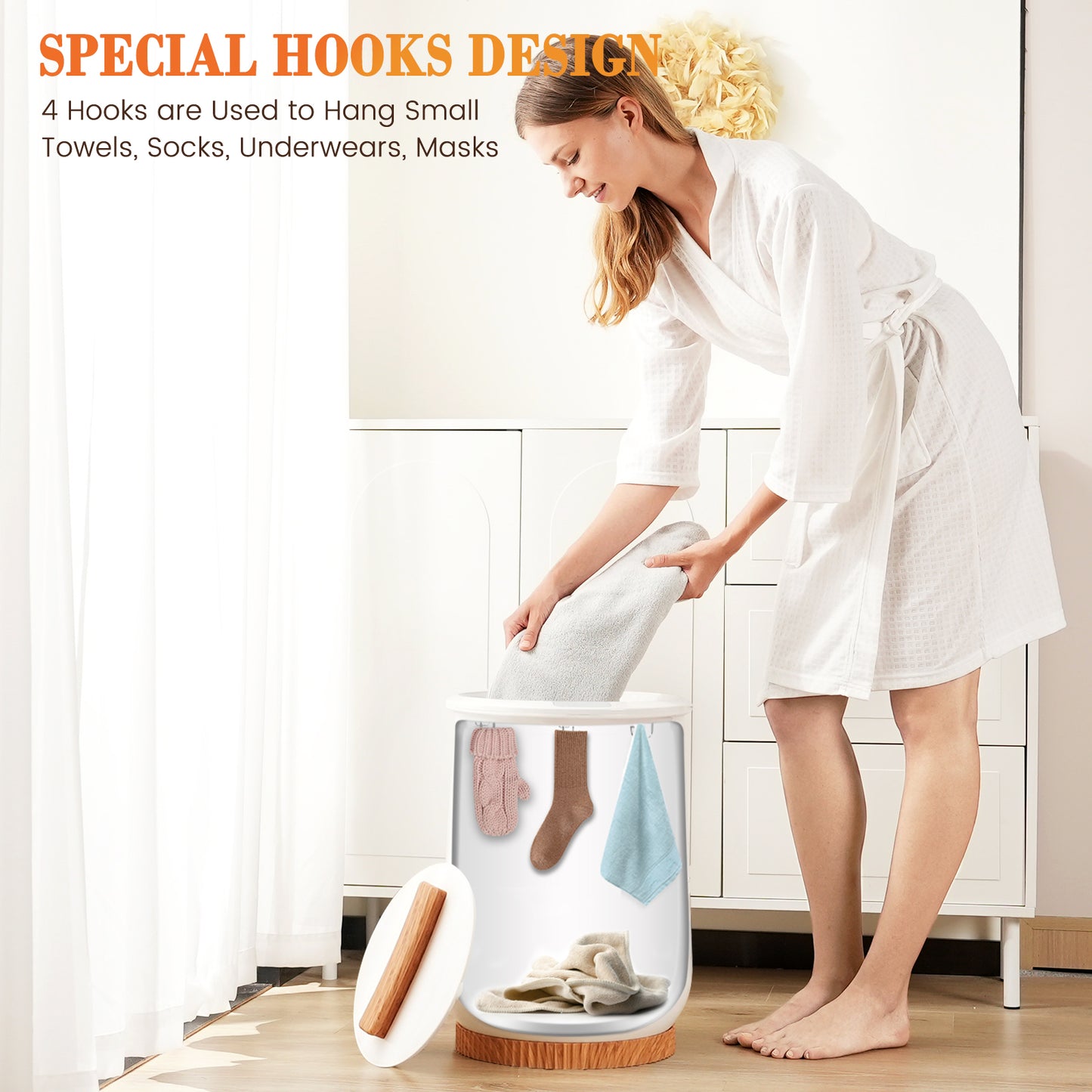 This ultra large towel warmer easily accommodates up to two 40 x 70 inch bath towels, robes, PJs, or your favourite throw blanket.
