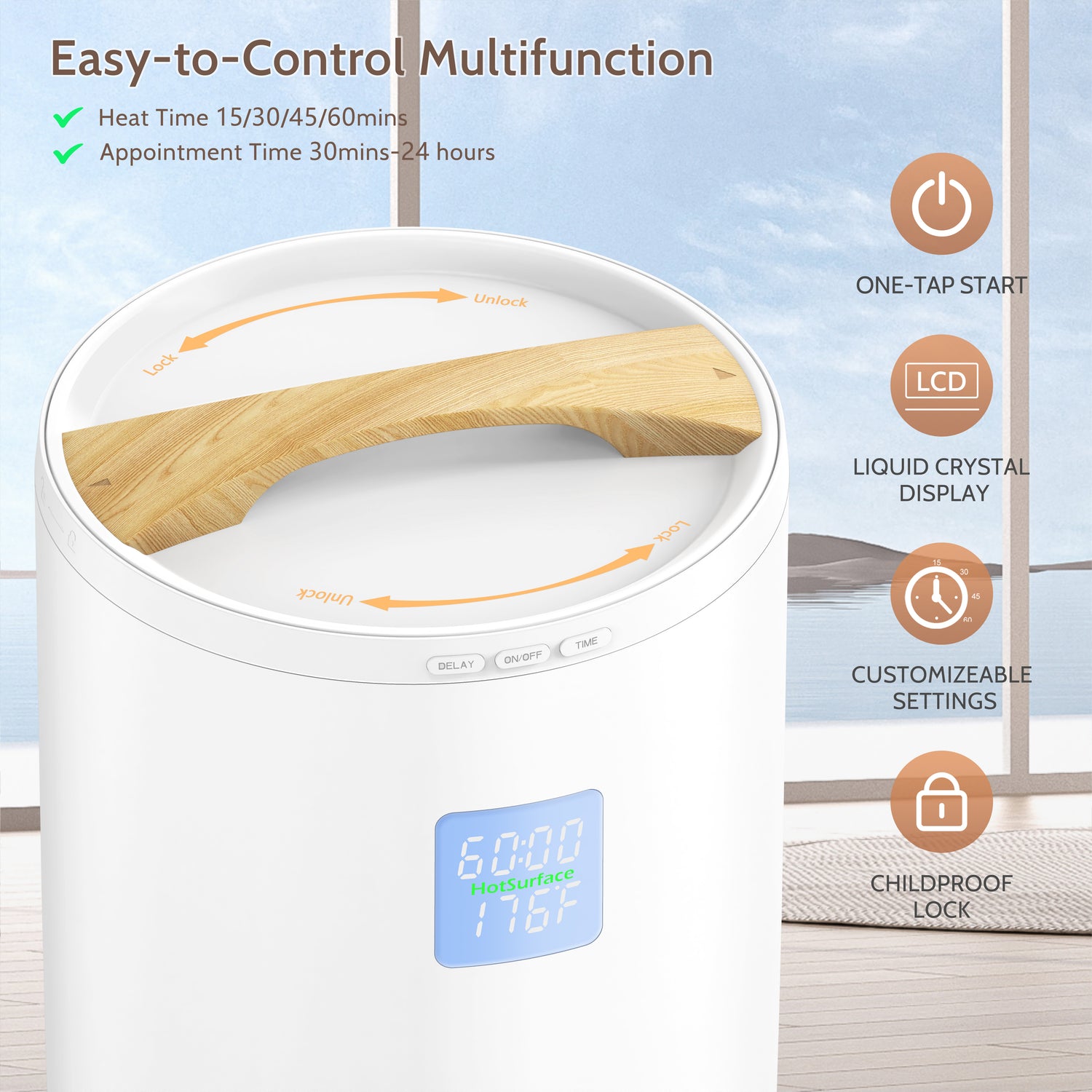 - Adjustable Heat Time 30/45/60 Min